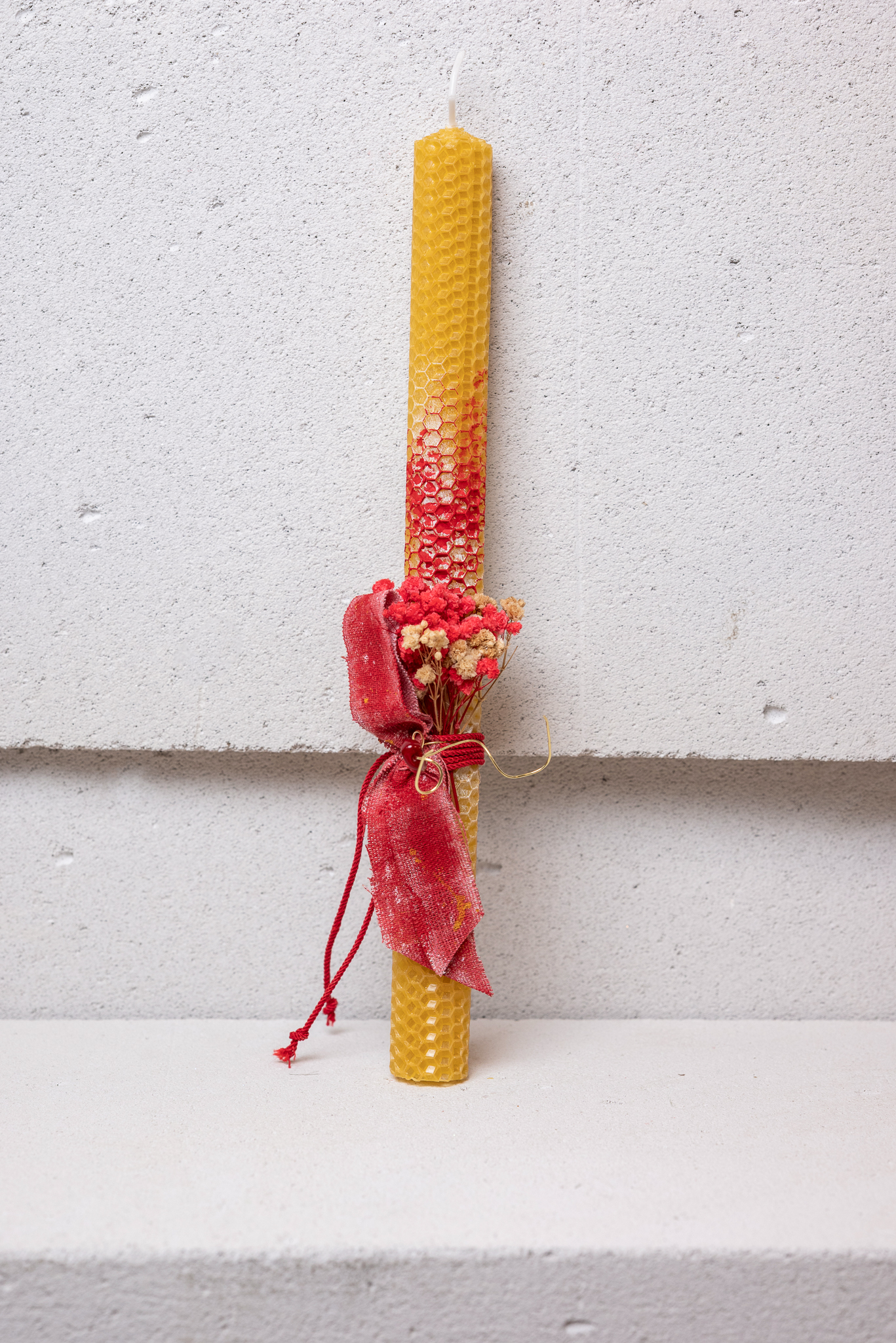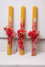 Κερί απο φυσικό μελισσοκέρι διακοσμημένο με αποξηραμένα άνθη